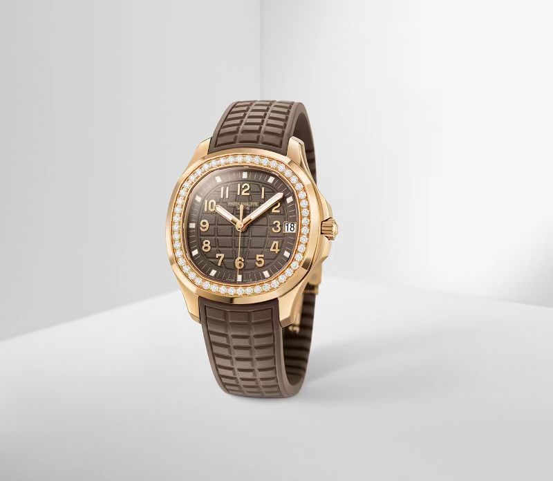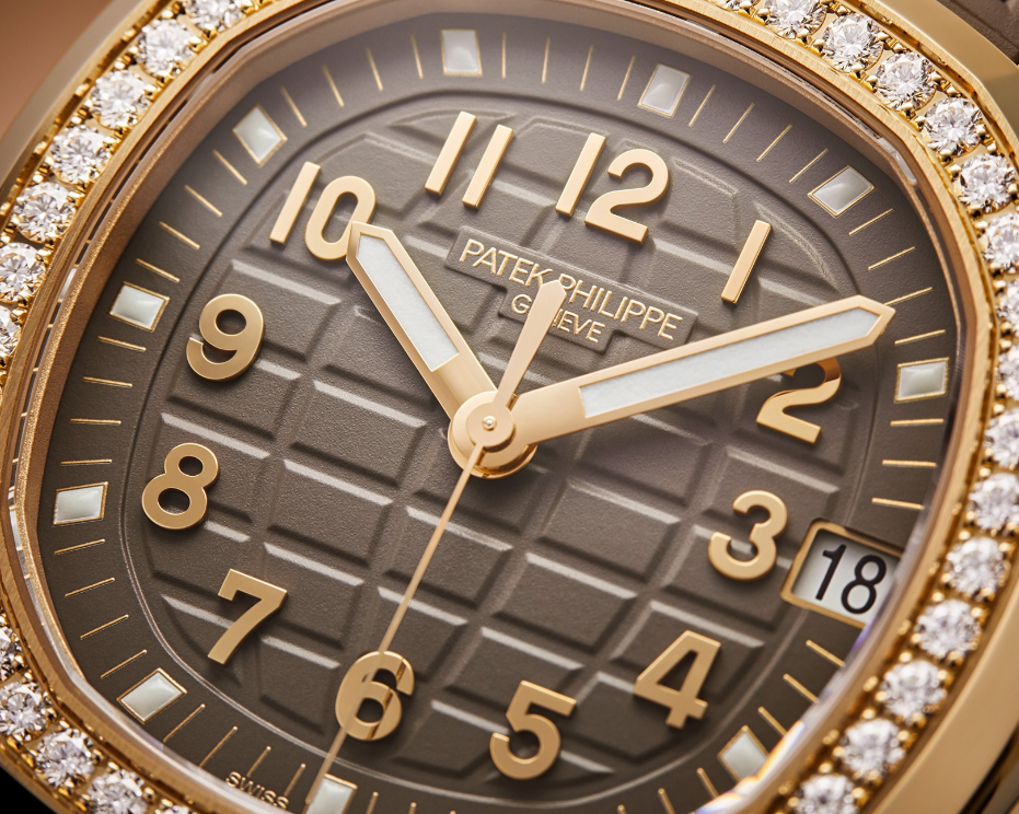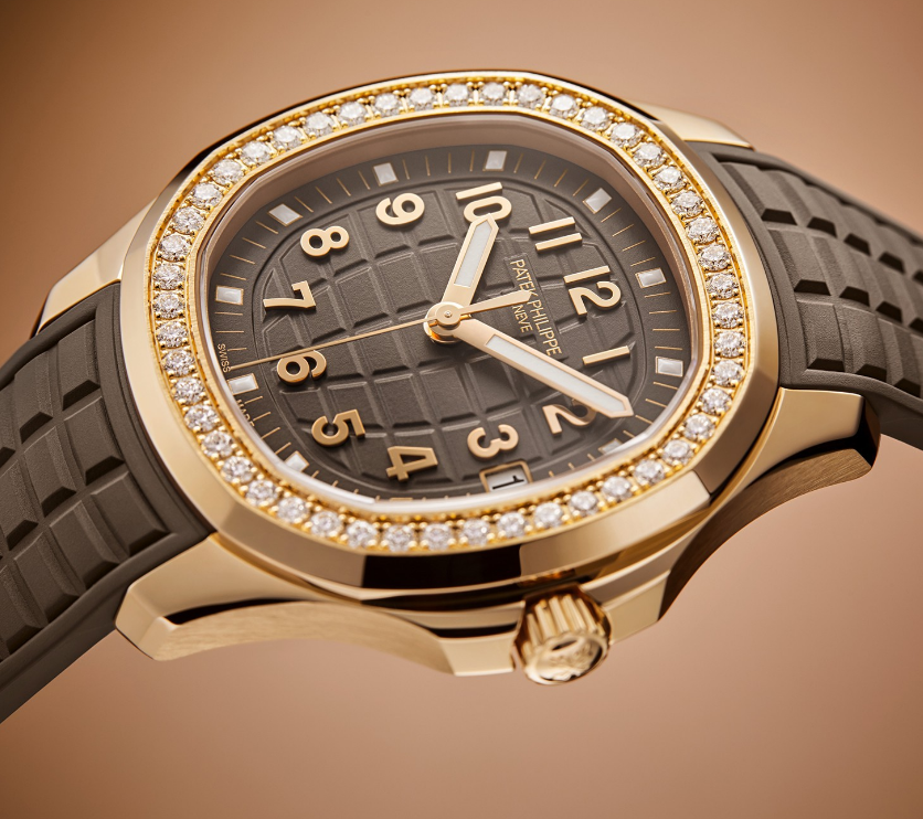 表盘材质:灰褐色表盘,饰有Aquanaut浮雕图案,搭配金质立体字块。