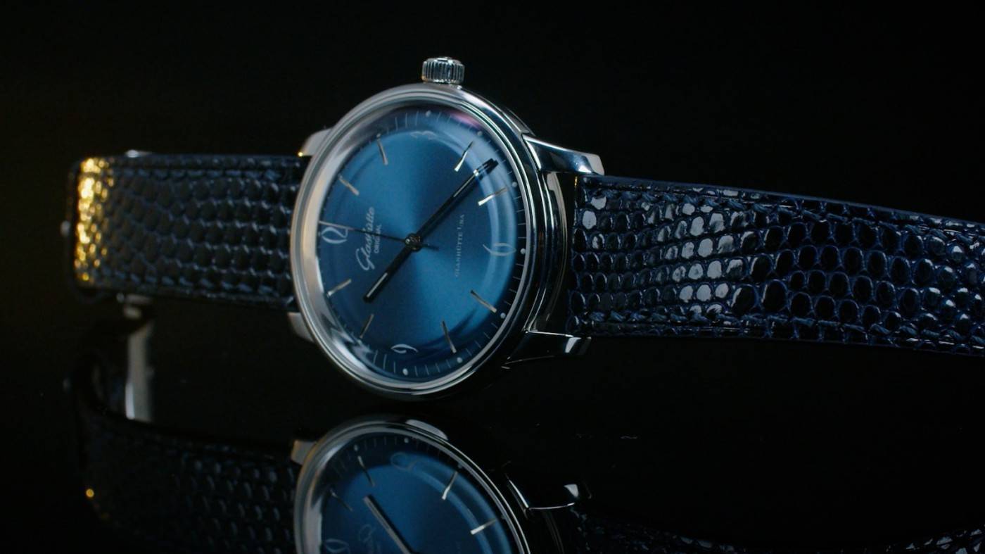 于是2007年,格拉苏蒂推出了一个全新的系列,就叫六零年代腕表。而我手上这枚9年前的午夜蓝,也是整个系列中,我个人觉得最好看的一枚。39毫米表径,大三针9.4毫米的厚度,用现代的眼光来看,这才是对60年代最好的致敬。就像当年的珠光漆盘面一样,为了呈现出更好的盘面视觉效果,这枚午夜蓝做了40多道工艺的电镀涂层,让整枚腕表的这抹湛蓝色更加特别。