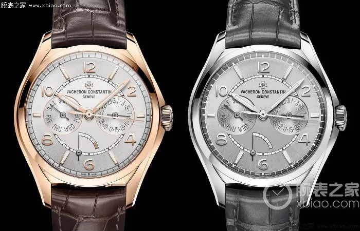 江诗丹顿新款56星期日历,金壳(左)和钢壳(右) 江诗丹顿56系列中被提及较少的,是这只星期日历。这只表的价格处于全历月相和三针日历之间。从一只星期日历表的角度看,江诗丹顿56星期日历不论是金壳版本还是钢壳版本,依然是一只公价不低的手表。 我们依然对比一下。手表世界里最著名的星期日历表之一,就是劳力士的DAY DATE(星期日历)。劳力士DD一向只推出金表,其中皮带版本的118138公价在17万多(金头皮带)。我们可以看到,金壳的江诗丹顿56星期日历(金头皮带),公价24万多。江诗丹顿56星期日历的公价符合江诗丹顿的一贯定位,是正常的。 金壳56星期日历 同时我们可以看到,江诗丹顿56星期日历的配置和品质同样是处于江诗丹顿的主流水平。40毫米表壳,和全历月相尺寸一样。虽然星期日历取消了全历月相表盘最外圈的日历环,但是,表盘最外圈刻度依然有同心圆纹路装饰。盘面9点位是星期指示,3点位是日期指示,动力显示6点位,星期盘和日期盘都有唱片纹装饰,细节非常到位。江诗丹顿56星期日历使用的是2475机芯。2475机芯和2450/2460机芯本质上是一个机芯,有日内瓦印记,是江诗丹顿的主力机芯,保持了江诗丹顿的高水平。 钢壳56星期日历 显而易见,江诗丹顿新款56系列中的全历月相和星期日历两只表,完全是江诗丹顿主流手表的水平,素质和公价都是江诗丹顿一贯的水准。所以一些国外玩家也指出,全历月相和星期日历这两只表,绝对不是入门级手表。 公价8万9的江诗丹顿56大三针,是一个“烟雾弹”。 钢壳版本公价89000,金壳版本公价149000
